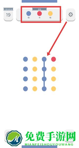 3、在关卡中,连接相同颜色的色块进行消除,达成该关卡指定目标。
