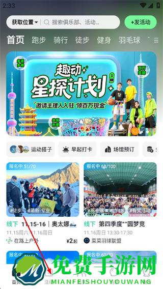 1、打开趣动APP,点击底部活动,进入活动页面。