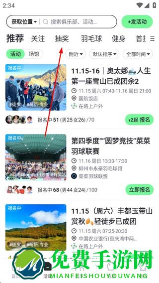 2、在活动页面点击抽奖标签,进入抽奖活动列表页面。