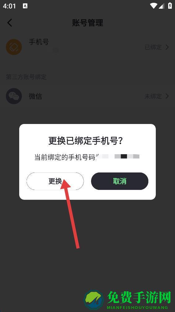 3、点击已绑定的手机号,在弹出窗口点击更换。