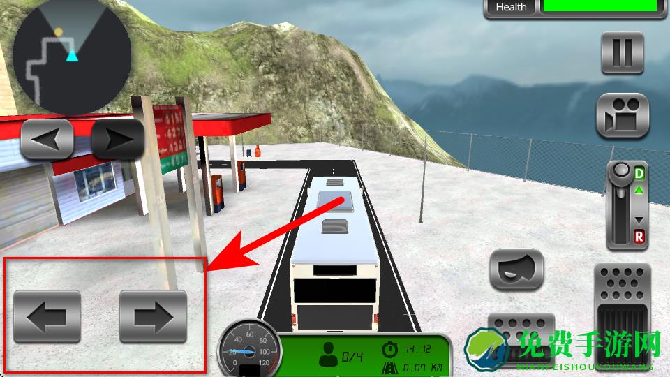 3、通过左侧的方向键控制巴士左右移动,调整行驶方向。