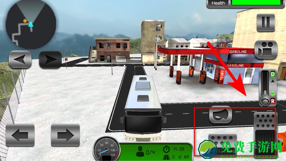 4、利用右侧的按钮控制巴士的加速、刹车等操作,驾驶巴士在道路上行驶。