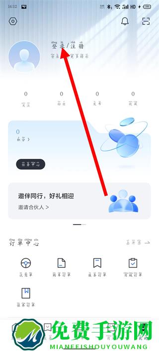 2、在个人页面,点击登录注册,进入登录页面。