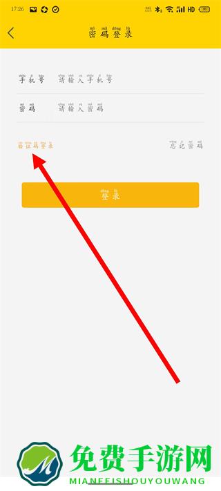 2、在登录页面,点击验证码登录,进入验证码登录页面。