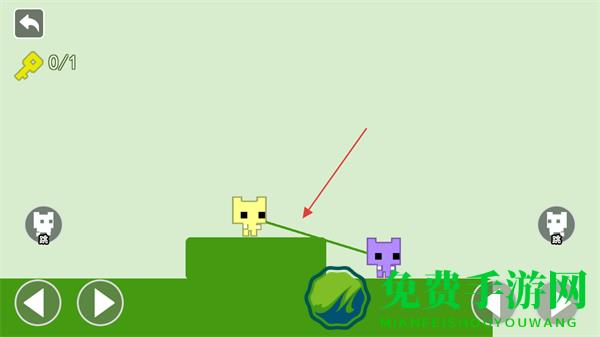 1、两个角色被锁链连接,需协同移动,通过左右方向键控制角色移动,利用地形让两个角色配合前进。