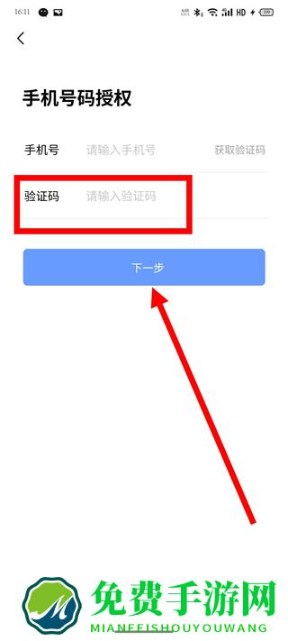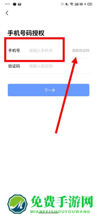 2、在手机号码授权页面,输入手机号后,点击获取验证码。