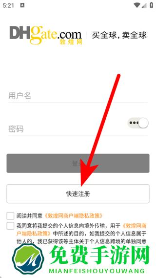 1、打开敦煌网外贸平台,在登录页面,点击快速注册,进入注册页面。
