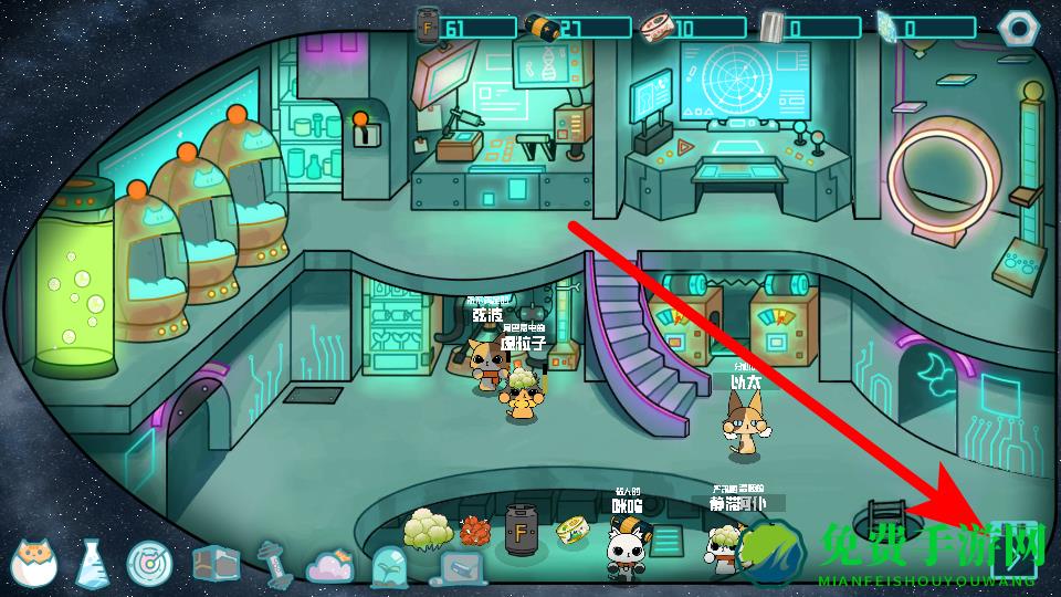 2、在飞船场景中,我们需找到传送门类建筑,点击进入,这是开启训练或任务环节的关键操作,准确点击后可进入训练界面,为猫咪提升战力创造条件。