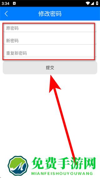 4、在修改密码页面,输入原密码、新密码、重复新密码后,点击提交,完成密码修改。