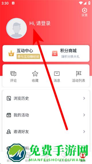 2、在我的页面,点击请登录区域,进入登录页面。