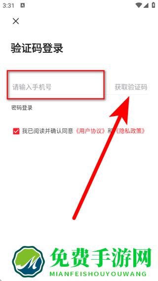 3、输入手机号,勾选已阅读并确认同意后,点击获取验证码。