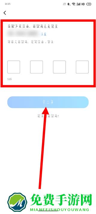 4、在短信验证页面,填写收到的验证码,点击下一步。