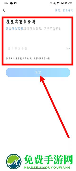 5、在设置密码页面,输入6-16位登录密码,点击确定,完成注册登录。