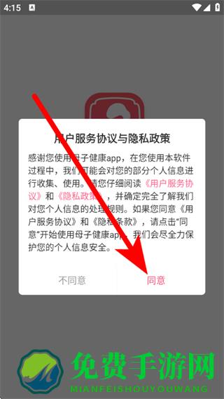 1、打开母子健康,在弹窗中,点击同意。