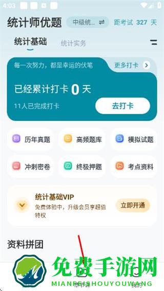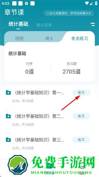 1、在统计师优题首页点击底部的章节课,进入章节课页面。