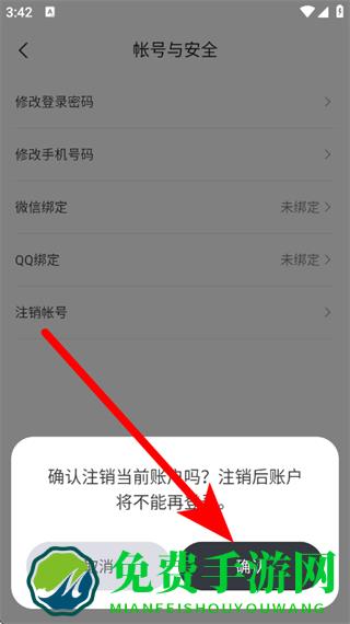 5、在弹出的确认提示,点击确认,完成账号注销操作。
