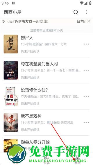 1、在西西小屋书架页面,点击底部我的,进入个人中心页面。