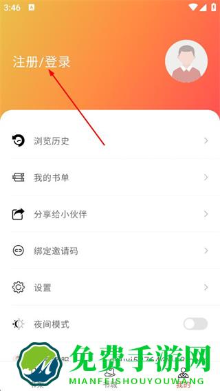 2、在个人中心页面,点击注册/登录区域,进入登录界面。