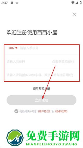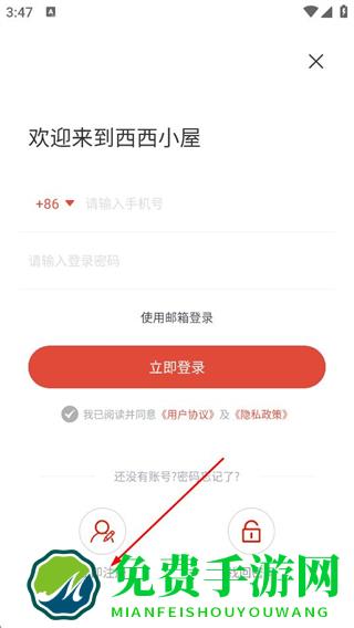 3、在登录界面,点击立即注册按钮,进入西西小屋的注册页面。