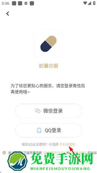3、在登录选择页面点击手机号登录,进入手机号登录页面。