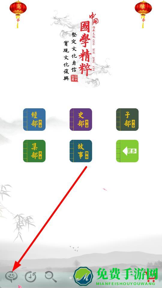 1、打开国学启蒙app,点击主界面左下角的设置图标。