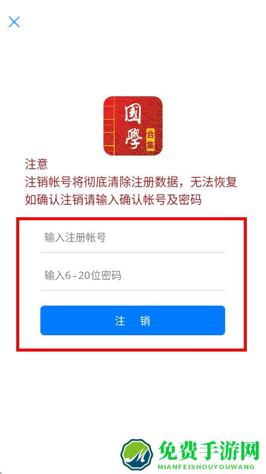 3、在弹出的注销确认界面中,输入注册帐号和6-20位密码。