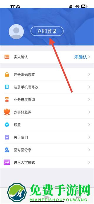 3、在登录界面,找到并点击刷脸登录选项,切换至刷脸登录的信息填写界面。