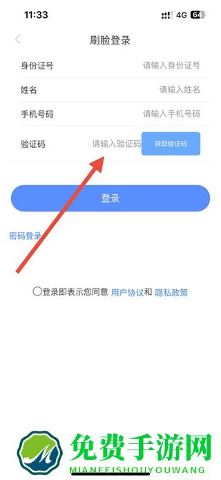 4、在页面依次输入个人信息,获取并填写验证码,勾选协议后点击登录,按照提示完成人脸识别验证,即可完成刷脸登录操作。