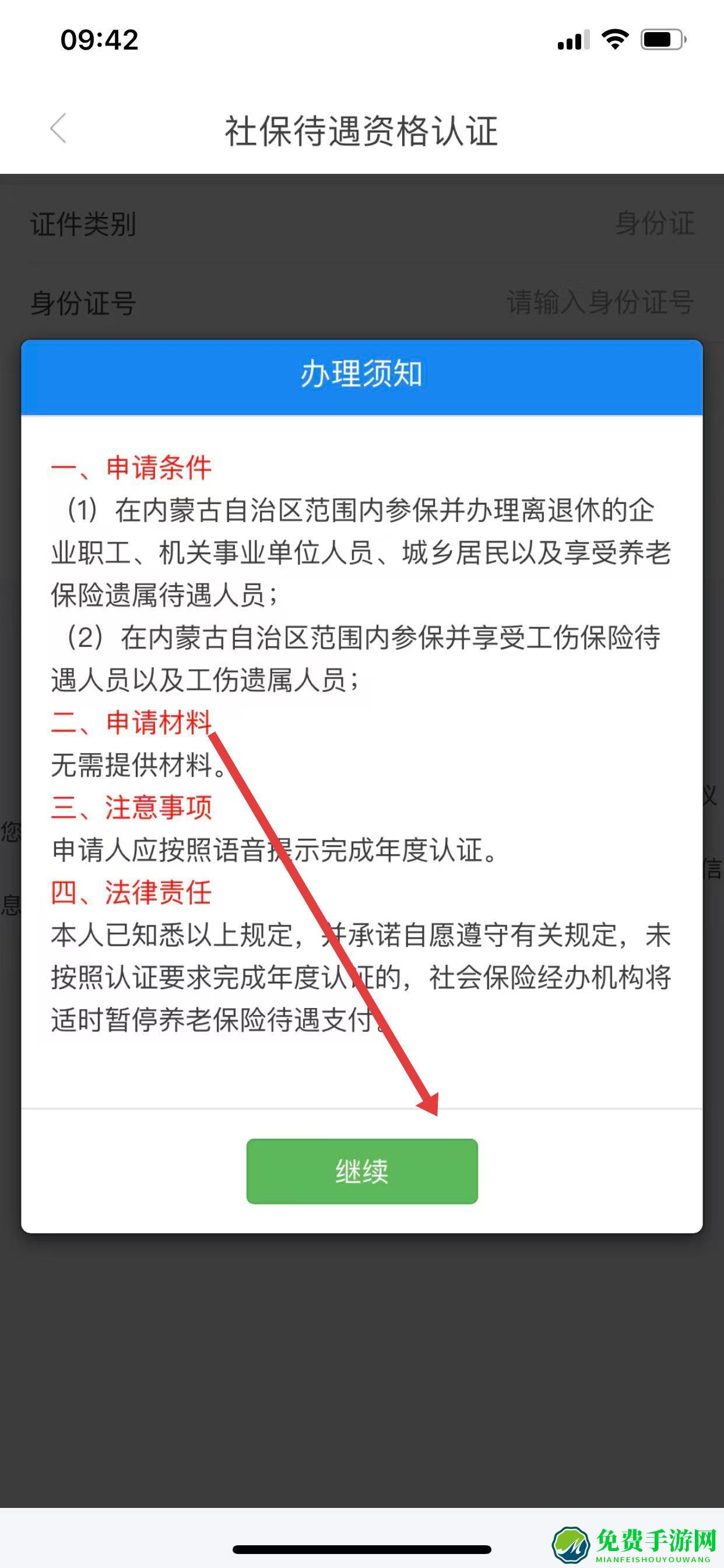 2、在弹出的办理须知窗口,仔细阅读内容后,点击继续按钮。