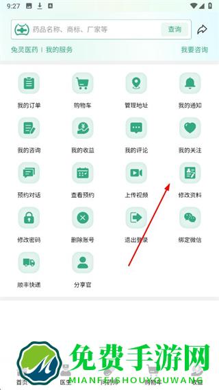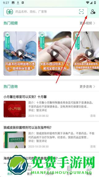 1、打开兔灵医药APP,点击首页右上角的个人中心图标。