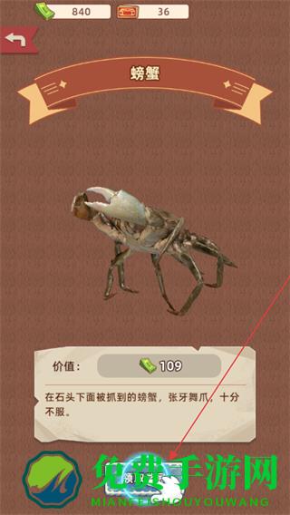 4、挖掘获得螃蟹道具,查看其价值,点击领取获取该道具及对应资源。