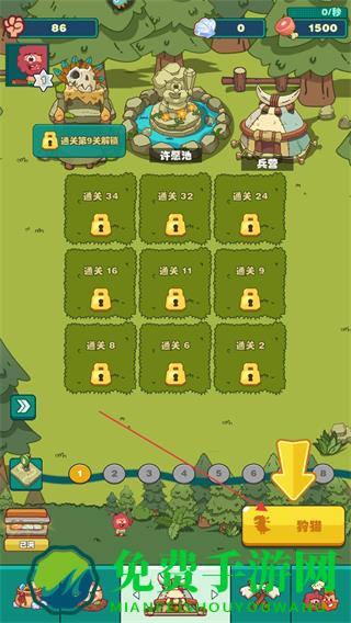 1、在关卡选择界面点击狩猎,进入对战关卡。