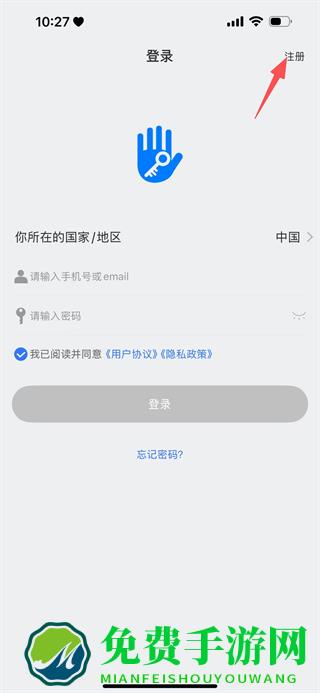 2、在登录页面,点击右上角的注册的选项,即可进入注册页面。