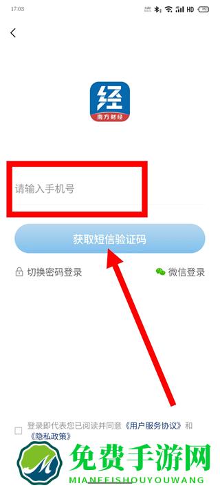 3、在登录界面,输入手机号,点击获取短信验证码。