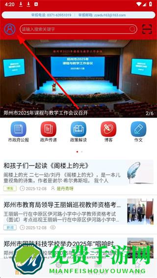 1、在郑州教育应用首页,点击左上角的头像图标,进入个人页面。