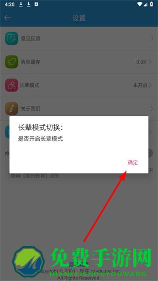 4、在弹窗中,点击确定按钮,即可开启长辈模式。