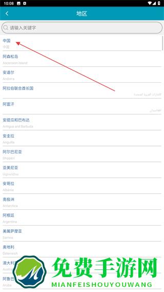 2、进入地区选择的界面内,选择并点击中国即可设置成功。