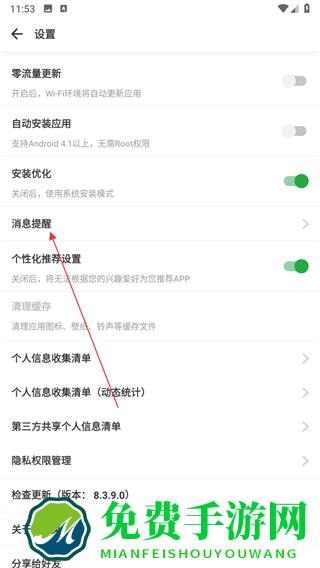 3、在设置页面里找到消息提醒选项,点击该选项进入消息提醒的详细设置页。