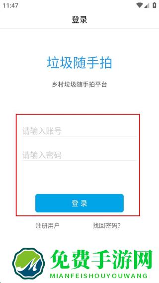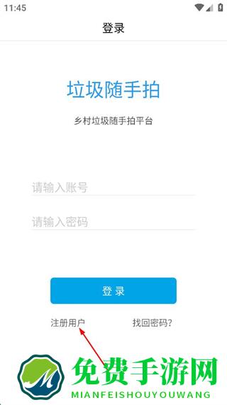 1、打开垃圾随手拍应用,在登录页面点击注册用户选项,进入注册界面。