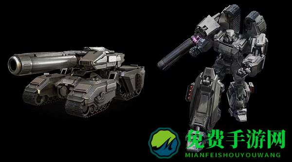 载具形态(4人载具):紫色重装坦克,拥有移动堡垒级防御和重复激活利用的机制。支持移动或原地变身,并可使用蓄力电磁炮技能。