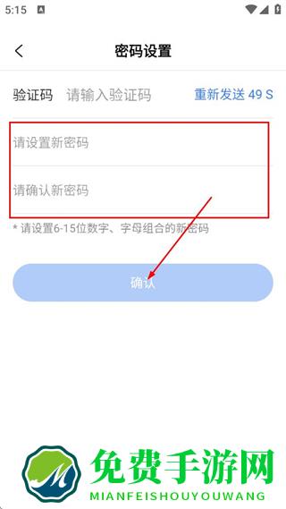 5、在该页面填写符合要求的新密码和确认新密码后,点击确认完成密码设置。