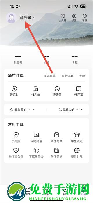 1、在华住会app的我的页面,点击左上角的请登录选项,进入登录相关操作界面。