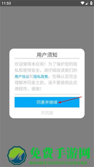 1、打开拍照转文字软件,点击用户须知弹窗中的同意并继续按钮,进入软件主界面。