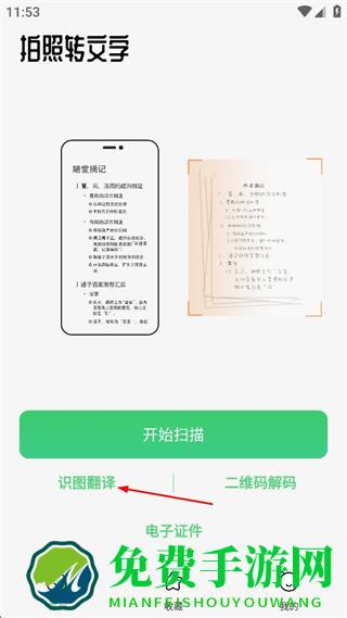 2、在软件主界面,选择识图翻译功能,点击开始扫描按钮进入图片选择界面。