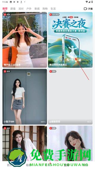 2、进入直播推荐的界面内,选择并点击要播放的封面。