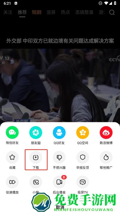 3、遇到想要保存的短视频,大家可以在分享这里进入找到下载功能进行视频的保存;