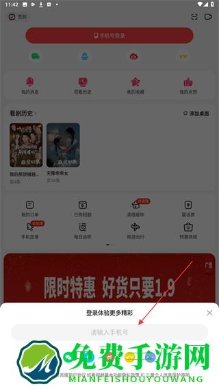 3、在下方输入框内,输入需要登录的手机号。