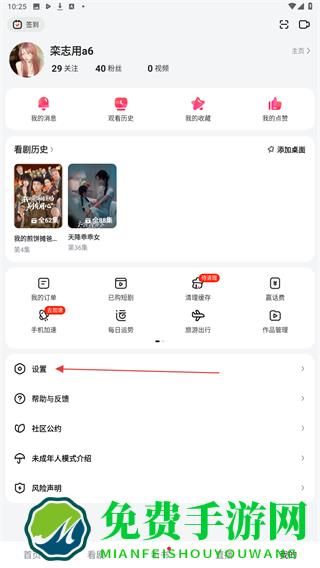 2、进入我的界面内,用户需点击下方设置的功能按钮。