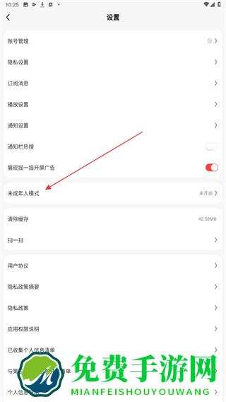 3、进入设置的页面内,向下拉动点击未成年人模式的按钮。