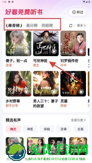 2、可通过推荐榜单,如推荐榜快速找热门书,找到目标听书内容后,点击封面进入作品详情页。